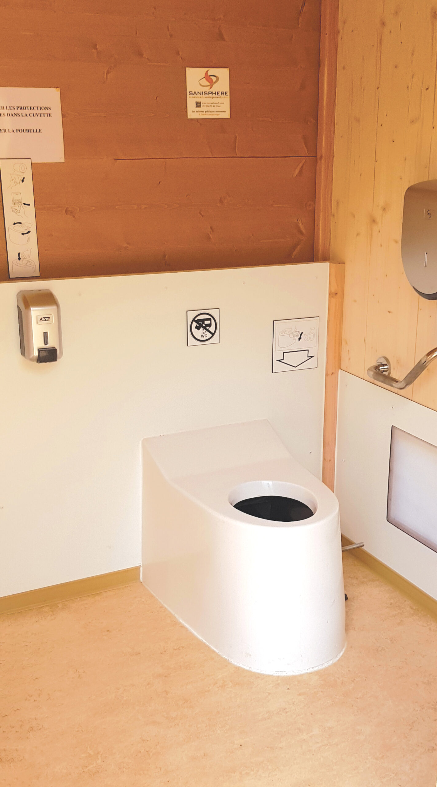 Chaque cabine Sanisphere est équipée d’un distributeur de gel hydroalcoolique et de papier hygiénique pour assurer l’hygiène. Les portes-manteaux, la signalétique intérieure et extérieure complètent l’équipement.