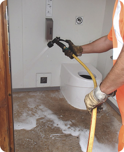La cabine est facile à nettoyer grâce à des surfaces lisses, sans recoins, permettant un lavage rapide, y compris à grande eau. L’absence d’eau et de réseau d’assainissement évite également les problèmes fréquents des sanitaires traditionnels : fuites, débordements ou traces d’eau au sol.